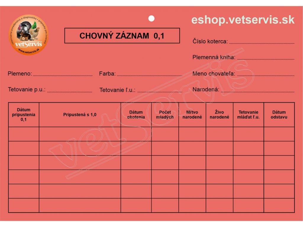 Chovný záznam SAMICA