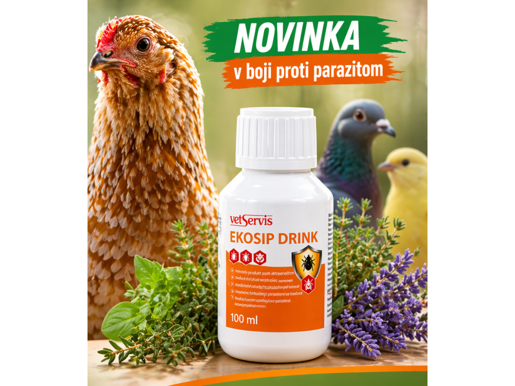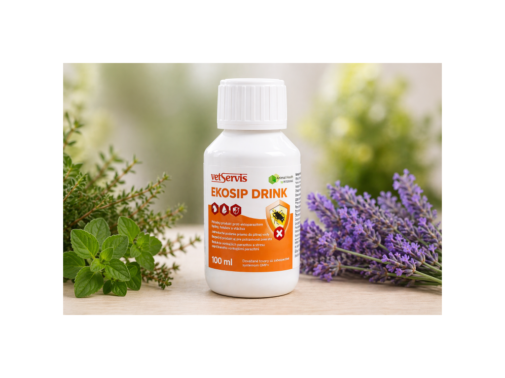 Prírodný produkt proti ektoparazitom hydiny, holubov a vtáctva na rastlinnej báze určený priamo na podanie do pitnej vody. Ekosip Drink je vhodný aj pre potravinové zvieratá. Pomáha v prevencií proti ektoparazitom, rovnako tak eliminuje stres zapríčineného vonkajšími parazitmi. Silné rastlinné výťažky sú bezpečné pre zvieratá, ale zároveň nechutné pre ektoparazity živiace sa krvou. Postupným dávkovaním sa teda znižuje príjem krvi a eliminuje sa rozmnožovacia schopnosť u parazitov.