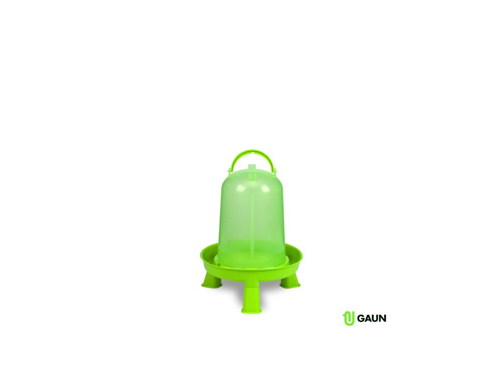 Preklopná zásobníková napájačka s nožičkami pre hydinu s nízkym spodkom. Vrchná časť je priehľadná pre lepšiu kontrolu hladiny vody. S plastovým držiakom pre ľahšiu manipuláciu. Spodná časť je z pevného plastu na nožičkách. Bez spodného výpustu.