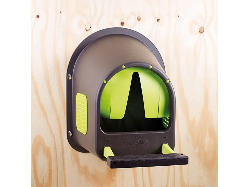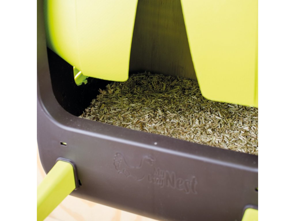 Plastové znáškové hniezdo "My Cozy Nest" je vyrobené z vysokokvalitného pružného polypropylénu, materiálu odolného voči nárazu, mrazu a UV žiareniu. Plastový materiál umožňujúci veľmi ľahké čistenie a dezinfekciu hniezda. Výška hrany a tvar hniezda zaisťujú, že sliepka nemôže zoškrabať podstielku zvnútra smerom von.