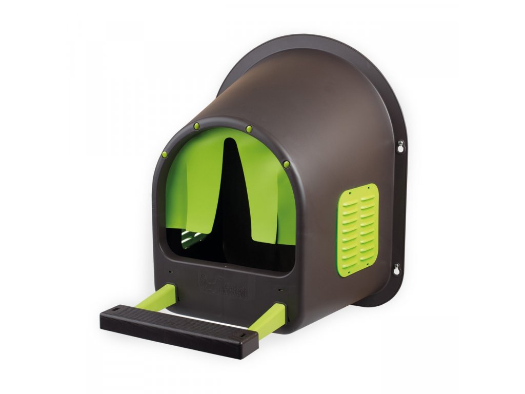 Dôležitým predpokladom pre hniezdo je dostatočná tma vo vnútri, ale aj uspokojivé prevzdušňovanie. „MyCozynest" spĺňa obe požiadavky. Prevzdušňovanie sa nedosiahne dierami v bočných stenách, ale prevzdušňovacími mriežkami s minimálnym výskytom svetla. Výskyt svetla je vpredu obmedzený aj zatemňovacím závesom. Vstup do hniezda je vybavený pevným schodiskom s protišmykovou konštrukciou vo forme ostrieža. Týmto spôsobom sa zvieratá ľahko dostanú do hniezda. Horná strana hniezda má zaoblený tvar, ktorý zabraňuje tomu, aby zvieratá na ňom sedeli. Zadná strana hniezda je otvorená, a preto musí byť montáž vykonaná na stenu. S 4 skrutkami a cez predtvarované 4 montážne otvory v zadnom okraji, môže byť hniezdo upevnené zacvaknutím oka.